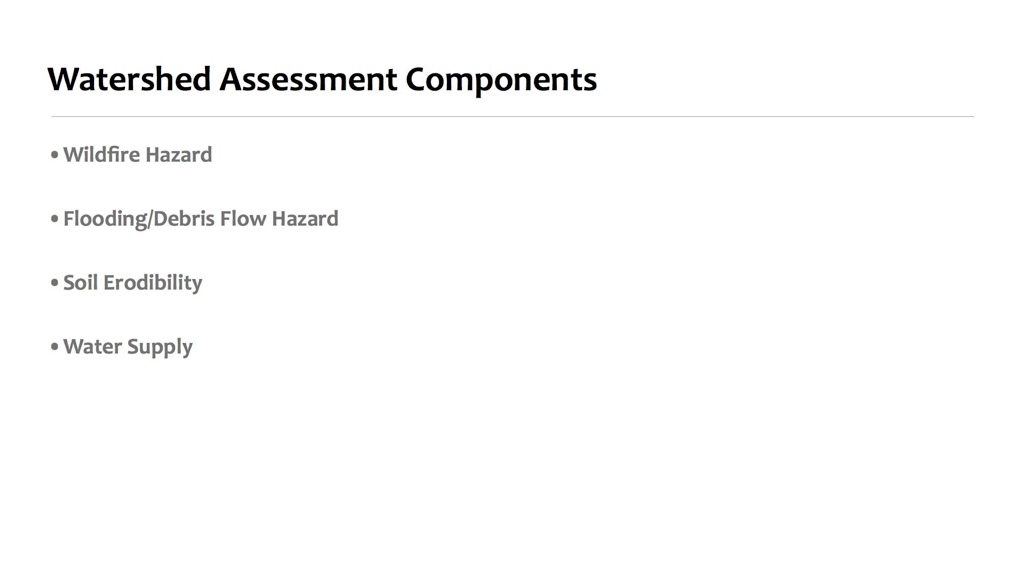 Status of Watershed Assessments in Colorado The slide show diaplys the status of watershed assessments in Colorado. It also shows an example of small watershed targeting from the Hewlett Gulch and High Park Fires. If you have further questions contact Brad Piehl. |